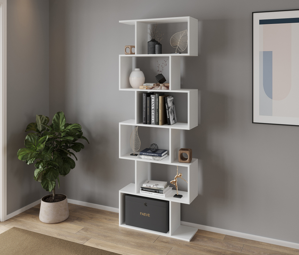 Стеллаж для дома книг и декора GT-56 (700×238×1922 мм, 6 секций, белый)